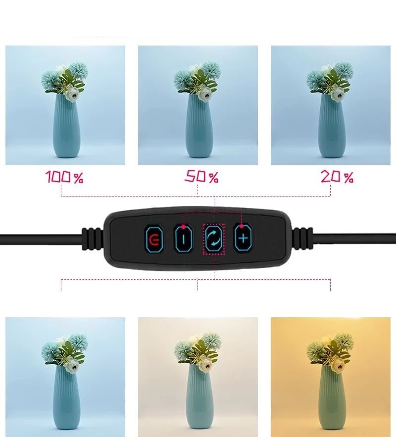محتوى العبوة – يتضمن وسادات خلفيات ملونة ، وضوء مدمج وكابل USB. ✅️